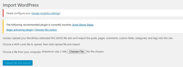 You will see the below Importer Screen where you have to upload the exported WordPress.com XML file that you have downloaded in Step 1. Note that if your file is greater than 2MB you have to split it and then import all files one by one. Upload the file.